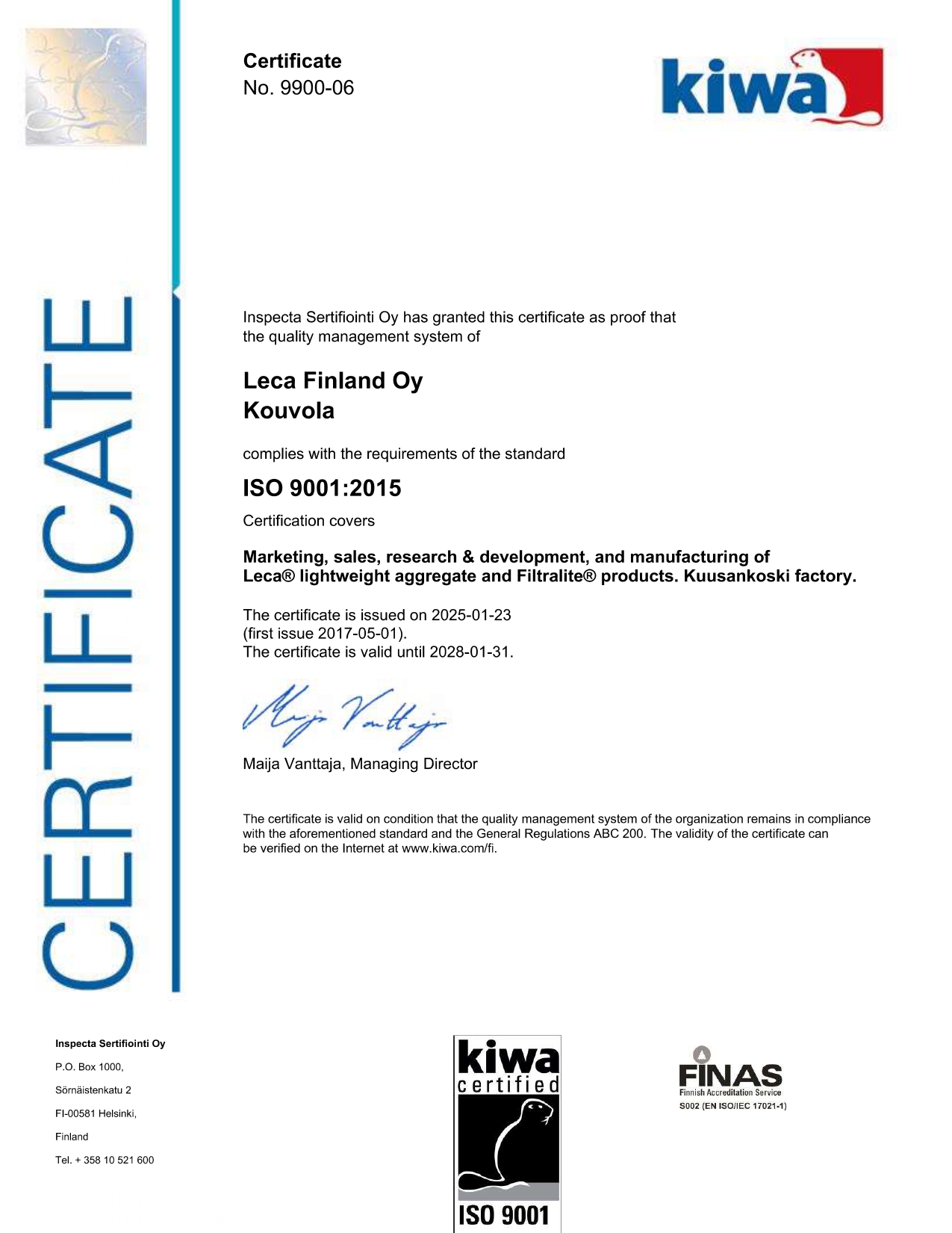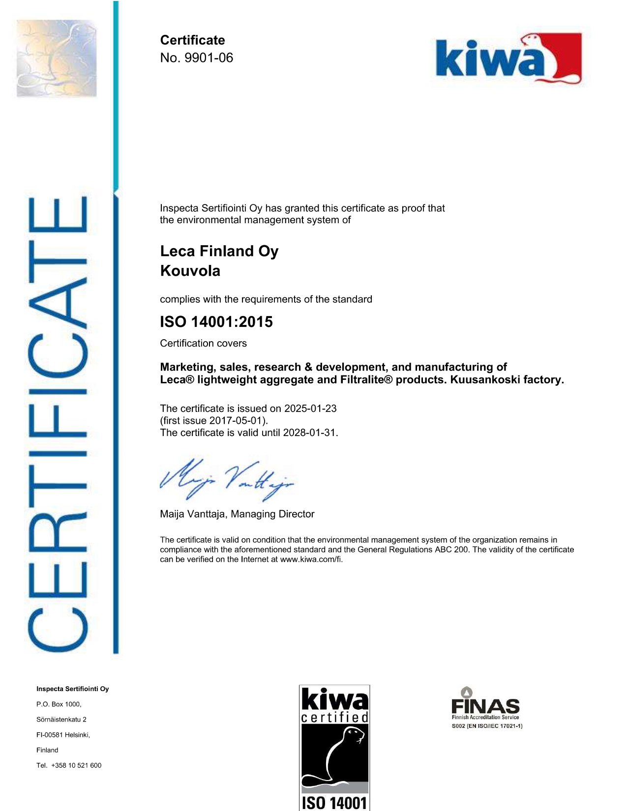 Address: Leca Finland Oy: Helsingintie 235, 45740 Kuusankoski, Finland